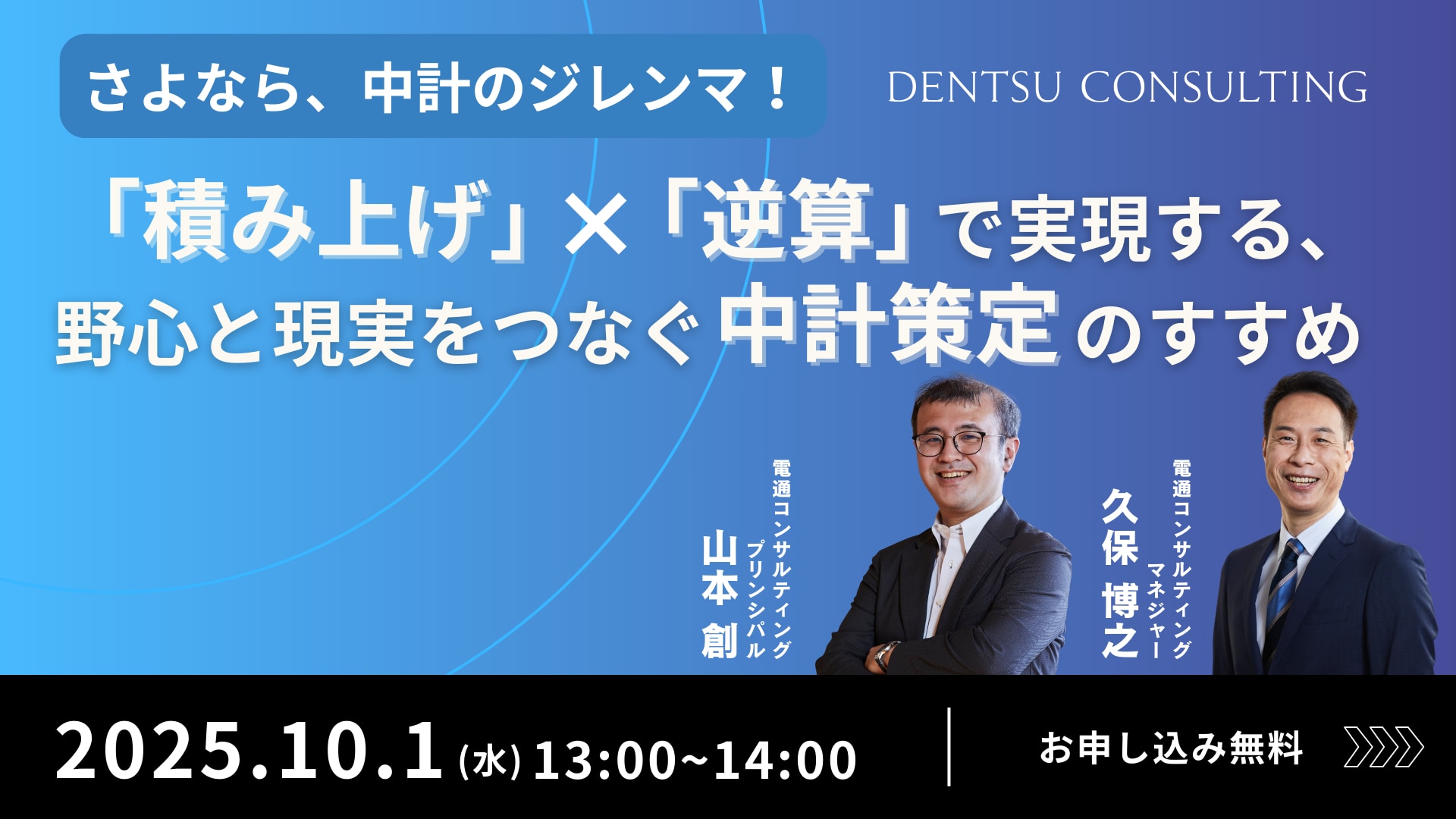 | タイトル | さよなら、中計のジレンマ! 「積み上げ」×「逆算」で実現する、野心と現実をつなぐ中計策定のすすめ |